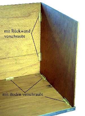 angeschrägt bzw. im Schraubstock auf etwa 85° gebogen und mit je zwei Schrauben verschraubt. - 32