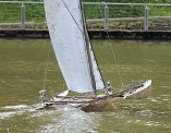 werden, die Segelfläche etwa 1 m². Die Gesamtverdrängung liegt bei diesen Maßen etwa bei 4-5 kg.