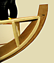 Bei der Konstruktion des Spantengerüsts sind jedoch die erforderlichen Änderungen aufgrund der Materialstärke der Balsa-Unterbeplankung zu berücksichtigen. Die Spanten müssen umlaufend um die Dicke der Unterbeplankung kleiner ausgesägt werden, ggf. sind auch Modifizierungen am Rückgrat des Modells im Bereich der Sponung erforderlich.