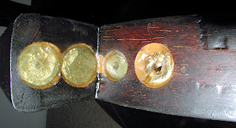 Es soll nicht unerwähnt bleiben, dass man zu einem Bleiballast auch ohne die oben beschriebene „heiße Prozedur“ kommen kann. Blei lässt sich mit kräftigen Hammerschlägen in die gewünschte Form sehr gut kalt treiben, größere Stücke können mit Epoxydharz miteinander verklebt und verbolzt werden. Diese Technologie habe ich vor einiger Zeit getestet, als ich unterstützend an einem Einsteigermodell eines Jugendlichen mitwirkte. Eine für ein IOM-Boot (Einmeter-Boot) konzipierte Bleibombe mit einem Durchmesser von ca. 40 mm habe ich zuerst etwas gebogen. Dann wurde eine zweite identische Bleibombe der Länge nach zersägt und eine der beiden Hälften auf die zuvor gebogene Bombe mit dem Hammer aufgetrieben und die Oberkante von diesem Gebilde vorerst grob mit dem Hammer flach geklopft. Nach dem Verkleben und Verstiften beider Teile mit zwei 4 mm dicken Messingrundstäben konnte die endgültige Form problemlos durch Raspeln, Spachteln und Schleifen erzielt werden.