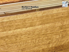 selbst geschnittenen Nußbaumleisten (3x7 mm) mehrfach mit Bootslack lackiert.